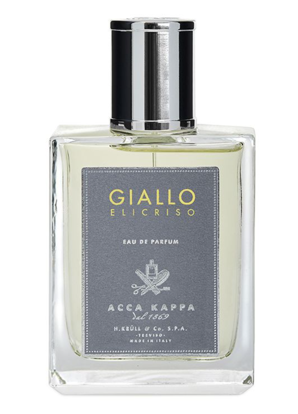Z kytice květů Helichrysum, doprovázené cedrem Diamante, listy fialky, bílým pepřem, muškátovým oříškem, cedrovým dřevem a vetiverem, vytvořili mistři parfuméři z Acca Kappa Giallo Elicriso: parfém, který uvolňuje smyslnost a kouzlo východního Jaderského moře s tisíci ostrovy a poloostrovy.